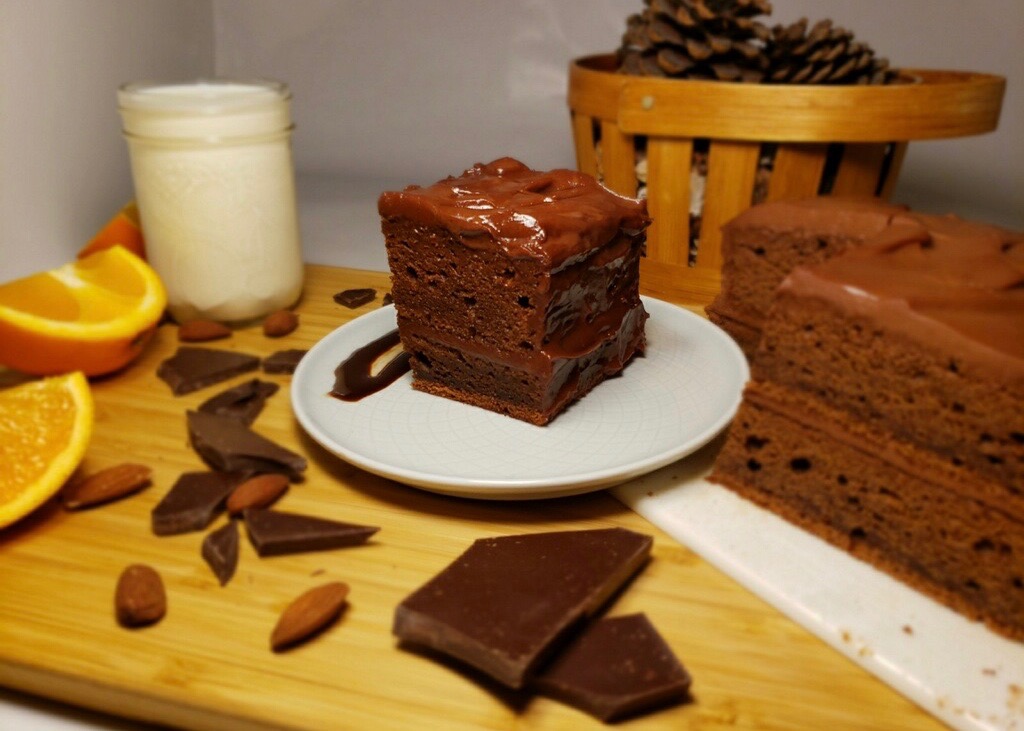 Double chocolate rich & fudgy cake made with Ghiradellia® semi-sweet dark chocolate